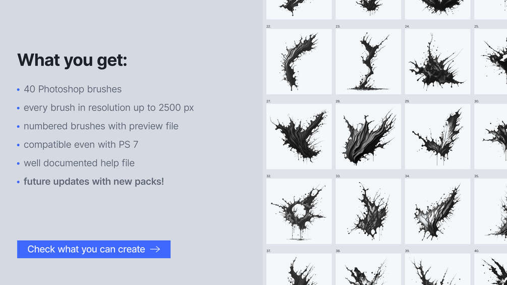 Over 40 paint and watercolor Photoshop brushes pack.